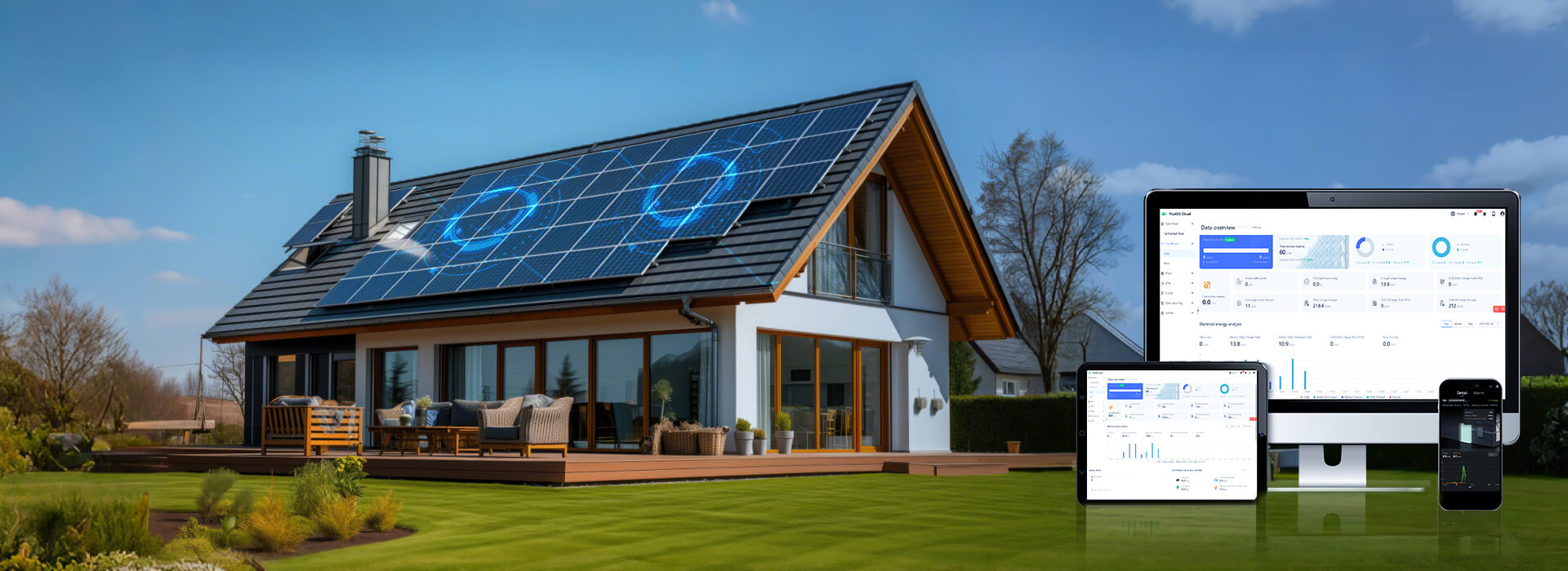 Énergie restante (SOC), production d’électricité quotidienne/mensuelle/cumulative, consommation d’énergie en charge des ménages, schéma des flux d’énergie en ville/photovoltaïque/stockage d’énergie en trois parties