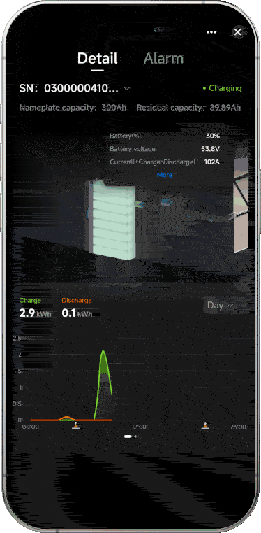 état de charge et de décharge du courant (décharge/charge/veille), alimentation en temps réel (kW), tension, courant, courant du mode de fonctionnement du système (connecté au réseau, hors réseau, hybride, etc.)